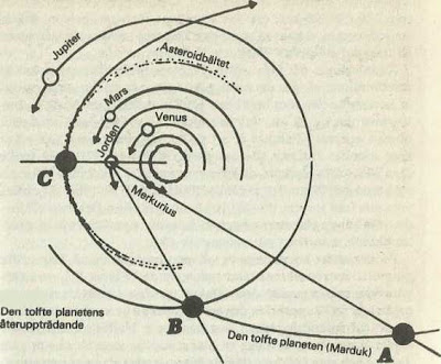 Att sätta likhetstecken mellan Den tolfte planeten och Jupiter är helt enkelt inte möjligt. I ”Skapelsens epos” står det klart och tydligt att Marduk var en inkräktare från den yttre rymden, att den passerade förbi de yttre planeterna innan den kolliderade med Tiamat. Sumererna kallade den NIBIRU (”genomkorsandets planet”), och den babyloniska versionen av skapelseberättelsen ger följande astronomiska fingervisning:
