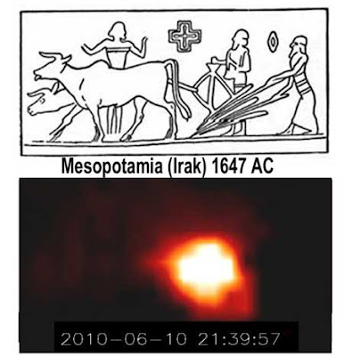 (Bild överst funnen vid arkeologiska utgrävningar i Nippur här jämförd med bild under hämtad från NASA´s solteleskop Helioviewer. Bild nedan hämtad ur NASA´s solteleskop SOHO januari 2013)