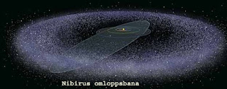 (Bild ovan ur solteleskopet Helioviewer tagen 26 juli 2013. Nibiru passerar tätt invid solen och i svansen kan anas planeter med mera som ingår i minisolsystemet )